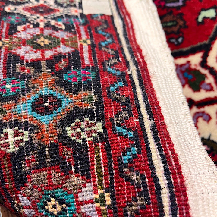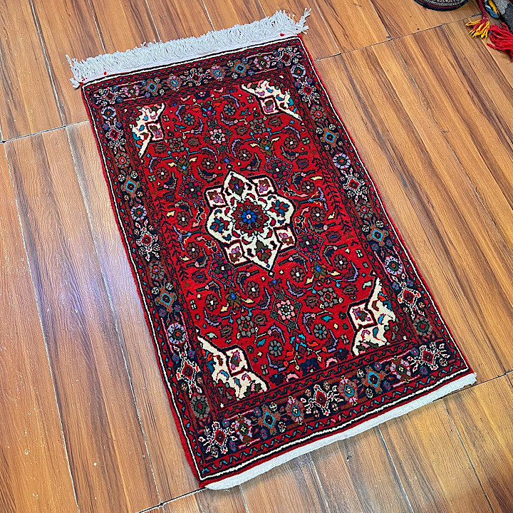 این قالیچهٔ دستبافت با زمینهٔ قرمز درخشان و نقوش هندسی ظریف، جلوهای اصیل و سنتی را به فضای شما میبخشد. ترکیب رنگهای تیره و روشن در طرحها، زیبایی و کنتراست چشمنوازی ایجاد کرده و حاشیههای چندلایه، ظرافت و دقت بافنده را نشان میدهد. وجود ریشههای بلند در دو طرف فرش نیز بر جذابیت ظاهری آن افزوده است.