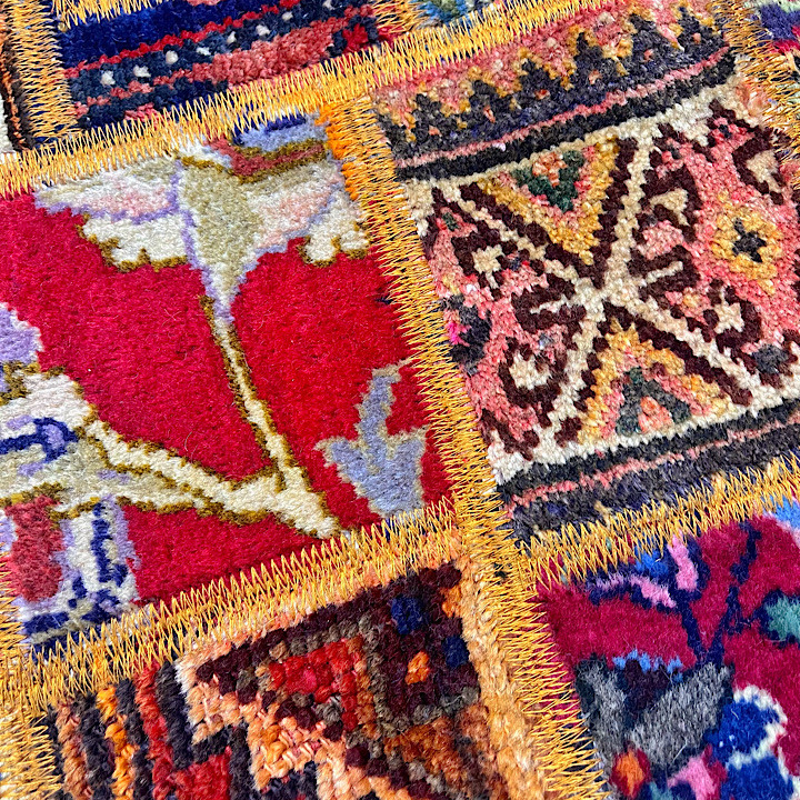 فرش کلاژ چهلتکه، یکی از انواع مدرن فرش است که در برای ساخت آن تکههای مختلف فرشهای دستباف را با یکدیگر ترکیب میکنند و در نهایت یک فرش کلاژ شده جدید میسازند. فرش کلاژ چهلتکه دستباف، تلفیقی شگفت انگیز از هنر کهن فرش و هنر سنتی چهلتکه دوزی است و بیشتر برای دکوراسیونهای مدرن استفاده میشود دوخت بین تکههای این فرش، چندلایه است و استحکام بسیار بالایی دارد. تمام تکههای این فرش ازجنس نخ و رنگ کاملا طبیعی هستند و با شستشو آسیب نمیبینند.