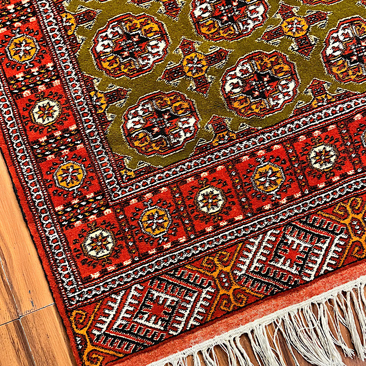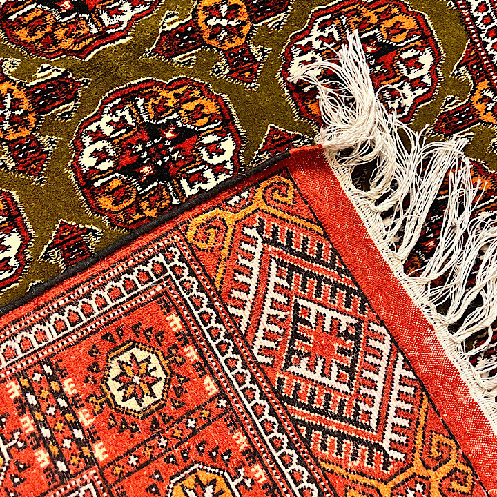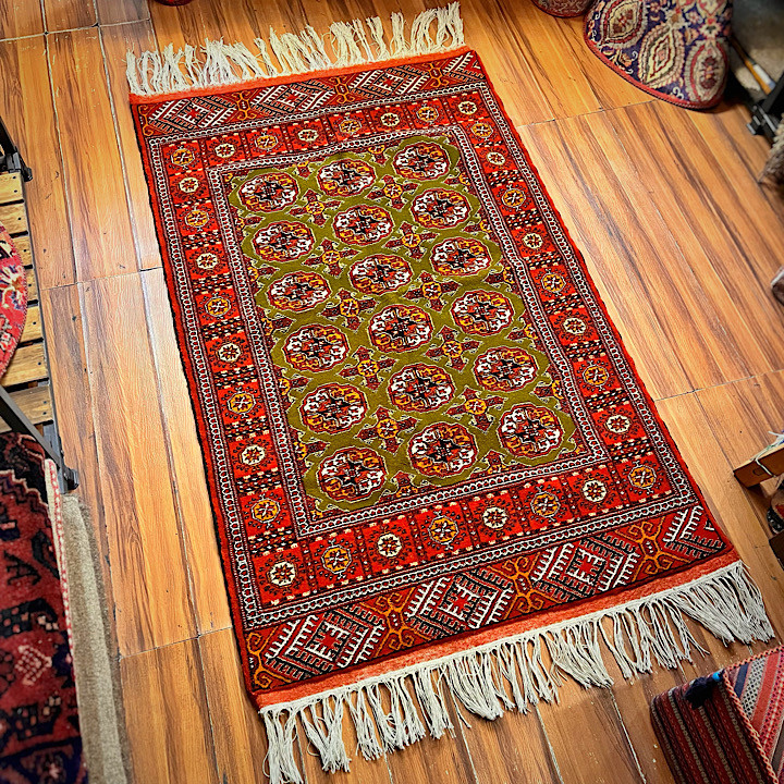 این فرش ترکمن تمام پشم نمونهای از هنر اصیل و دستبافت ترکمن است. ویژگیهای برجسته این فرش شامل موارد زیر است: