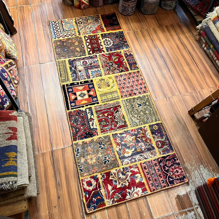 فرش کلاژ چهلتکه، یکی از انواع مدرن فرش است که در برای ساخت آن تکههای مختلف فرشهای دستباف را با یکدیگر ترکیب میکنند و در نهایت یک فرش کلاژ شده جدید میسازند. فرش کلاژ چهلتکه دستباف، تلفیقی شگفت انگیز از هنر کهن فرش و هنر سنتی چهلتکه دوزی است و بیشتر برای دکوراسیونهای مدرن استفاده میشود دوخت بین تکههای این فرش، چندلایه است و استحکام بسیار بالایی دارد. تمام تکههای این فرش ازجنس نخ و رنگ کاملا طبیعی هستند و با شستشو آسیب نمیبینند.