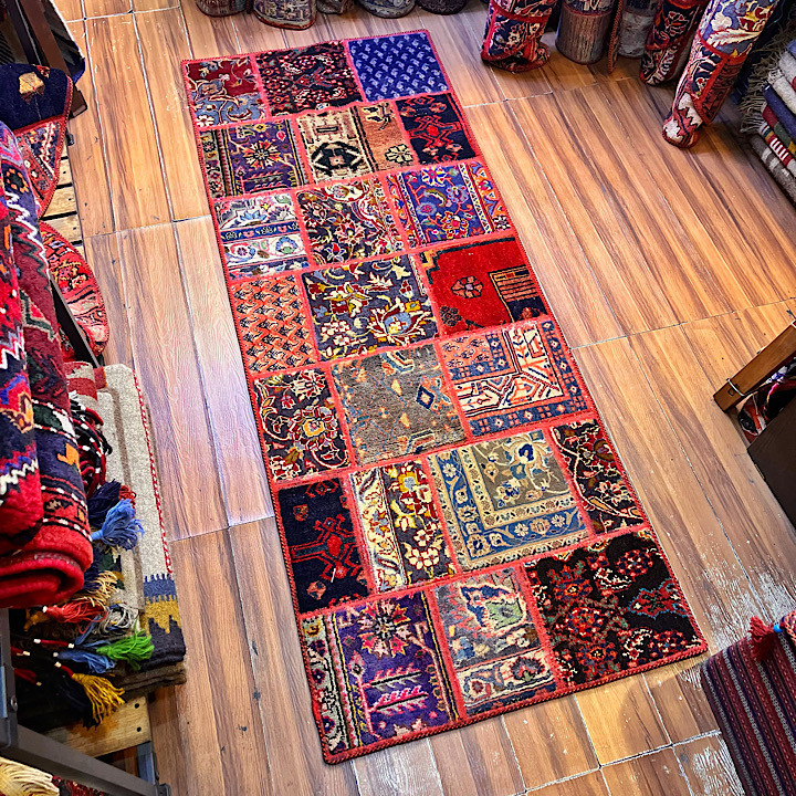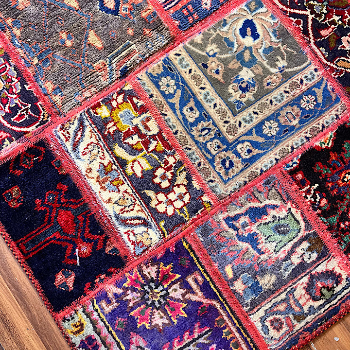 فرش کلاژ چهلتکه، یکی از انواع مدرن فرش است که در برای ساخت آن تکههای مختلف فرشهای دستباف را با یکدیگر ترکیب میکنند و در نهایت یک فرش کلاژ شده جدید میسازند. فرش کلاژ چهلتکه دستباف، تلفیقی شگفت انگیز از هنر کهن فرش و هنر سنتی چهلتکه دوزی است و بیشتر برای دکوراسیونهای مدرن استفاده میشود دوخت بین تکههای این فرش، چندلایه است و استحکام بسیار بالایی دارد. تمام تکههای این فرش ازجنس نخ و رنگ کاملا طبیعی هستند و با شستشو آسیب نمیبینند.