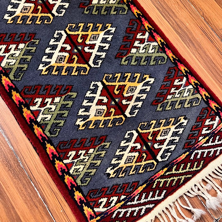 این فرش ترکمن تمام پشم نمونهای از هنر اصیل و دستبافت ترکمن است. ویژگیهای برجسته این فرش شامل موارد زیر است: