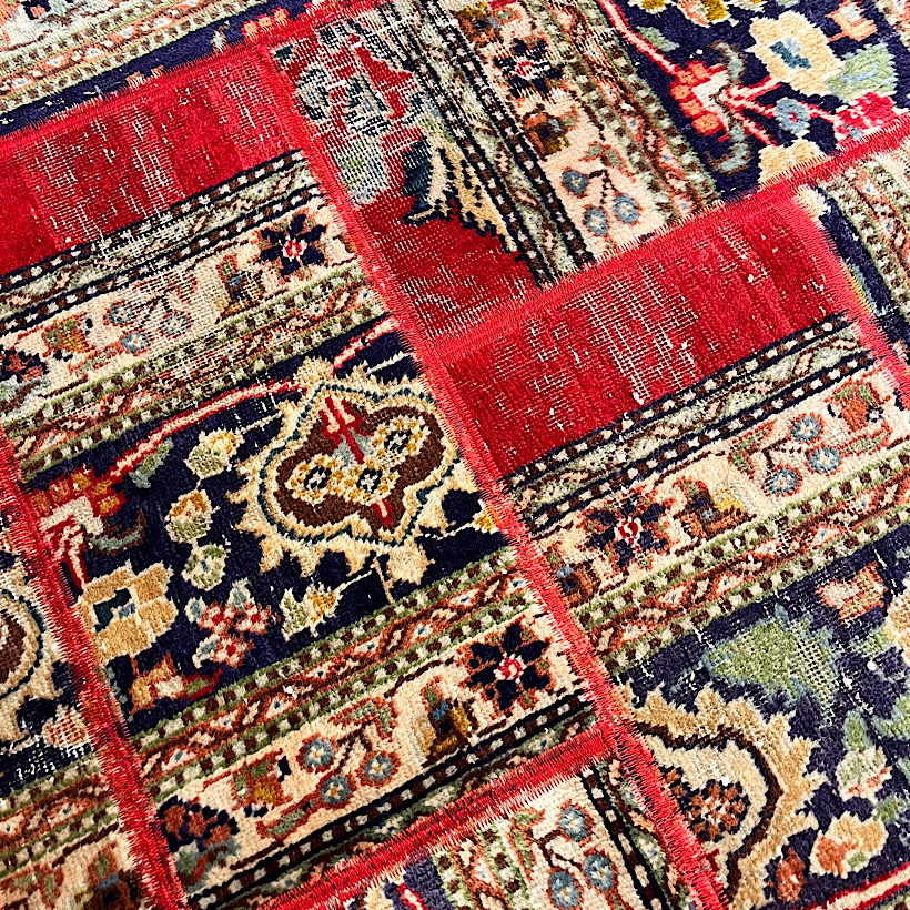 فرش کلاژ چهلتکه، یکی از انواع مدرن فرش است که در برای ساخت آن تکههای مختلف فرشهای دستباف را با یکدیگر ترکیب میکنند و در نهایت یک فرش کلاژ شده جدید میسازند. فرش کلاژ چهلتکه دستباف، تلفیقی شگفت انگیز از هنر کهن فرش و هنر سنتی چهلتکه دوزی است و بیشتر برای دکوراسیونهای مدرن استفاده میشود دوخت بین تکههای این فرش، چندلایه است و استحکام بسیار بالایی دارد. تمام تکههای این فرش ازجنس نخ و رنگ کاملا طبیعی هستند و با شستشو آسیب نمیبینند.